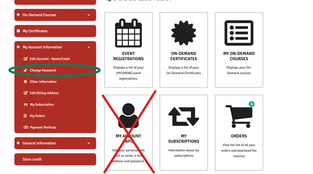 *Note You might notice the “My Account Info” option on the main menu this is not the correct option for changing your password.