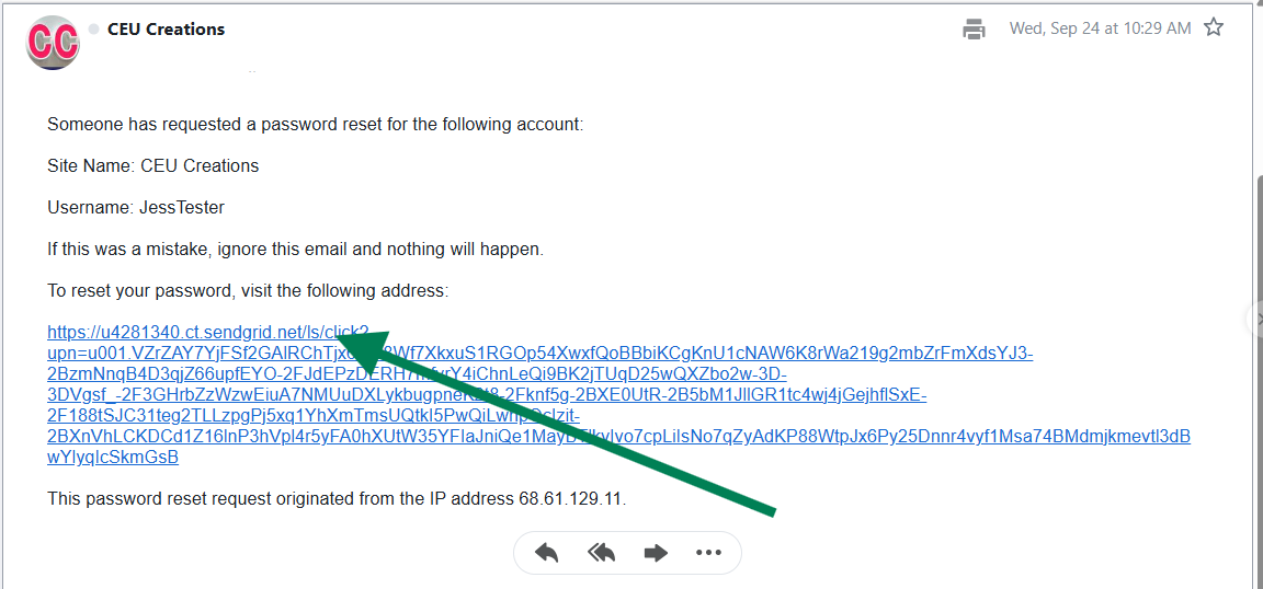 Step 4 will take you away from the CEU Creations website to your personal email. The email address associated with your CEU Creations account will receive the reset email.