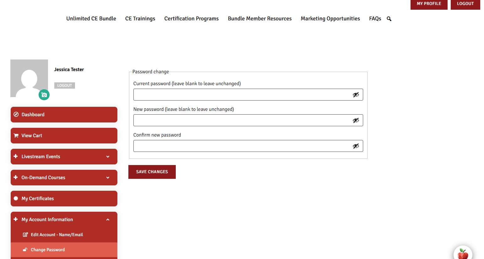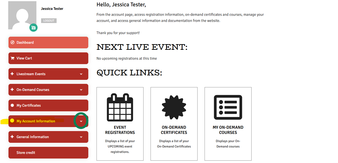 Logging in will take you to your member profile where you can see your information, courses, and certificates.