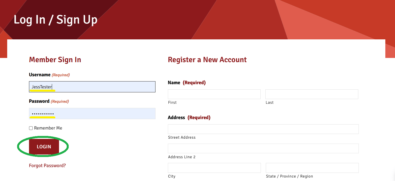 Click on “Forgot Password?” below the Member Sign In.