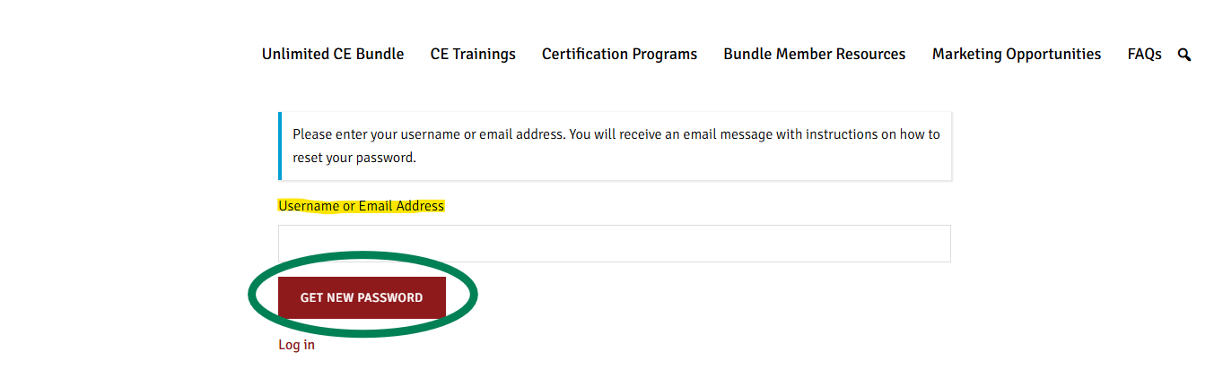 Enter your username or email address then click the “Get New Password” button. An email will be sent to the email address associated with your account with further instructions.